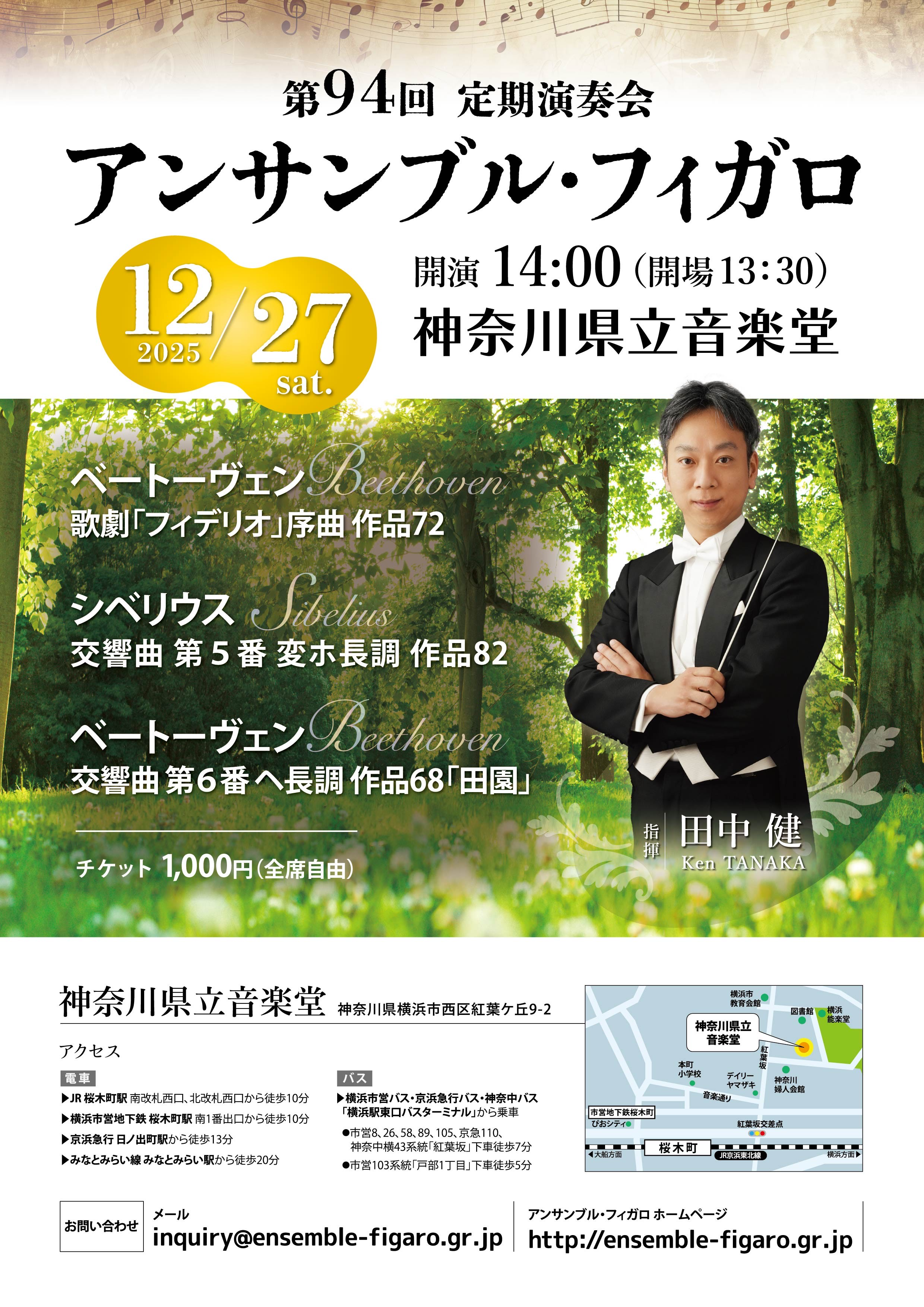 14:00 開演 (13:30開場) 全席自由・入場料 ¥1,000円 会場:神奈川県立音楽堂 指揮:田中 健 |